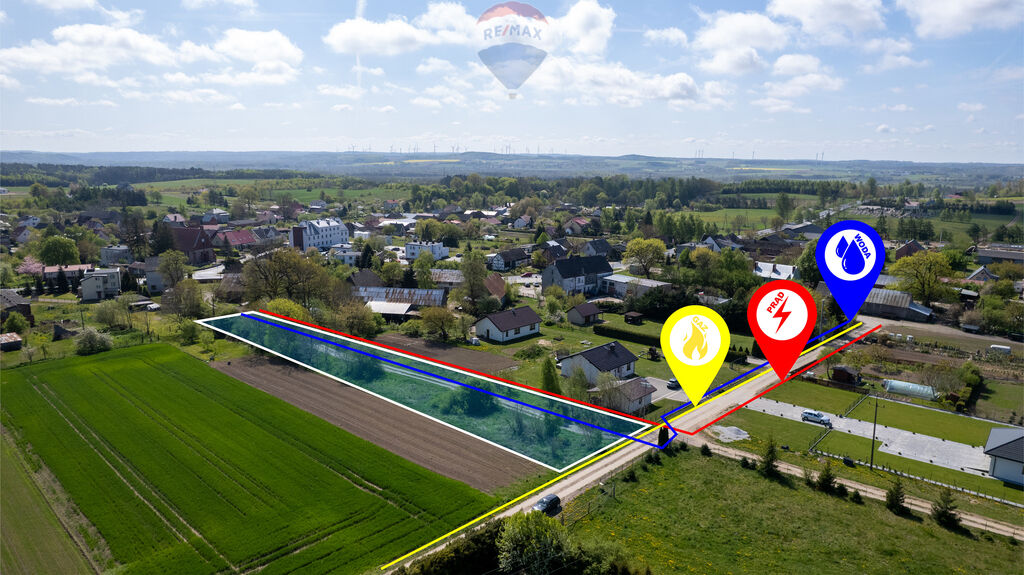 Media (prąd, woda, gaz) znajdują się w drodze przy działce –